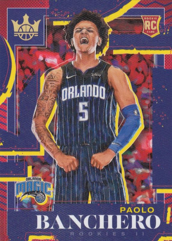 This card is 1 of 9 Paolo Banchero's card variations in the 2022 Court Kings set being tracked by Sports Card Investor, including Rookies I, Rookies III, Rookies IV, Fresh Paint Autographs /199, and Aurora /(SSP).