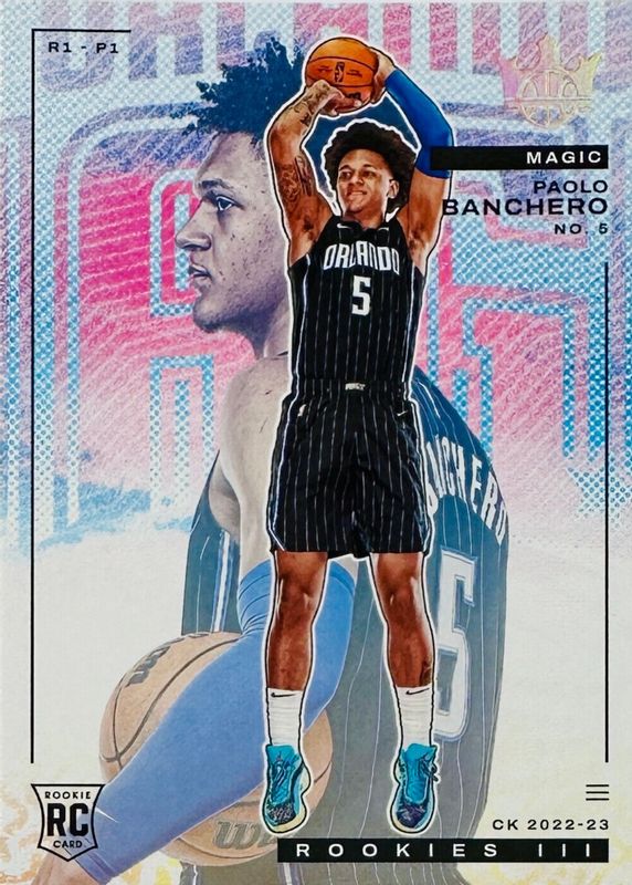 This card is 1 of 9 Paolo Banchero's card variations in the 2022 Court Kings set being tracked by Sports Card Investor, including Rookies I, Rookies II, Rookies IV, Fresh Paint Autographs /199, and Aurora /(SSP).
