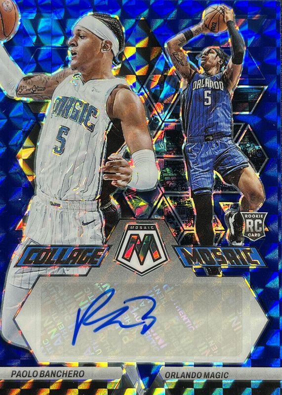 2022-23 Panini Mosaic PAOLO BANCHERO Collage Mosaic Blue Prizm Auto 1/25 Magic