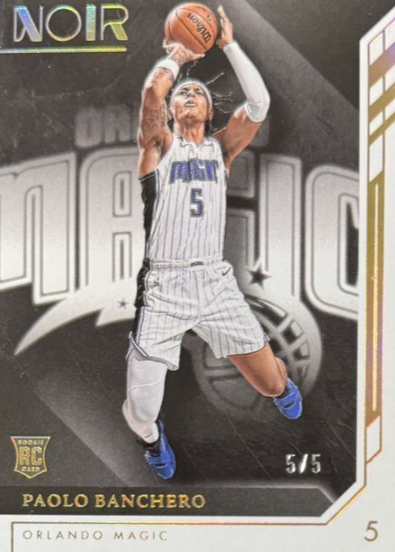 The Paolo Banchero 2022 Noir #156 Association Edition - Holo Gold /5 Rookie card in Raw condition has not changed in price in the last 30 days and was last sold for $160.50 .