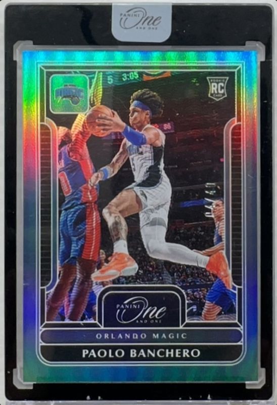 The Paolo Banchero 2022 One and One #146 Blue /40 Rookie card is 1 of 55 Paolo Banchero's card variations in the 2022 One and One set being tracked by Sports Card Investor, including Base /99, Purple /25, Red /15, Gold /10, and FOTL Pink /6.