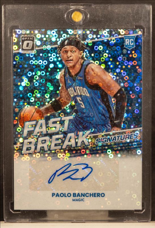 The Paolo Banchero 2022 Optic #FBS-PBC Fast Break Signatures Rookie card is 1 of 105 Paolo Banchero's card variations in the 2022 Optic set being tracked by Sports Card Investor, including Base, Checkerboard, Choice, Choice Red & Green, and Fast Break.