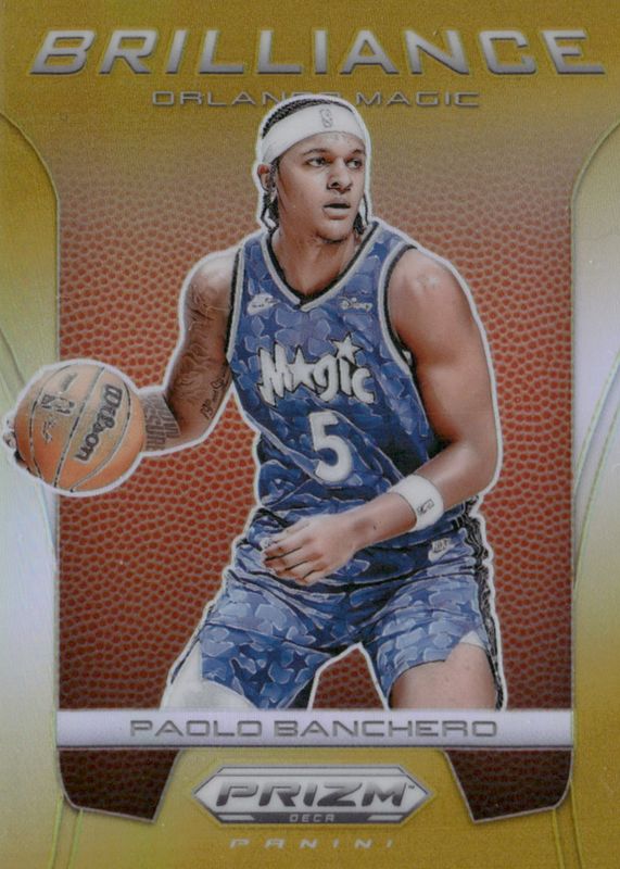 The Paolo Banchero 2023 Prizm Deca #14 Brilliance - Gold /10 card in Raw condition has not changed in price in the last 30 days and was last sold for $125.50 .