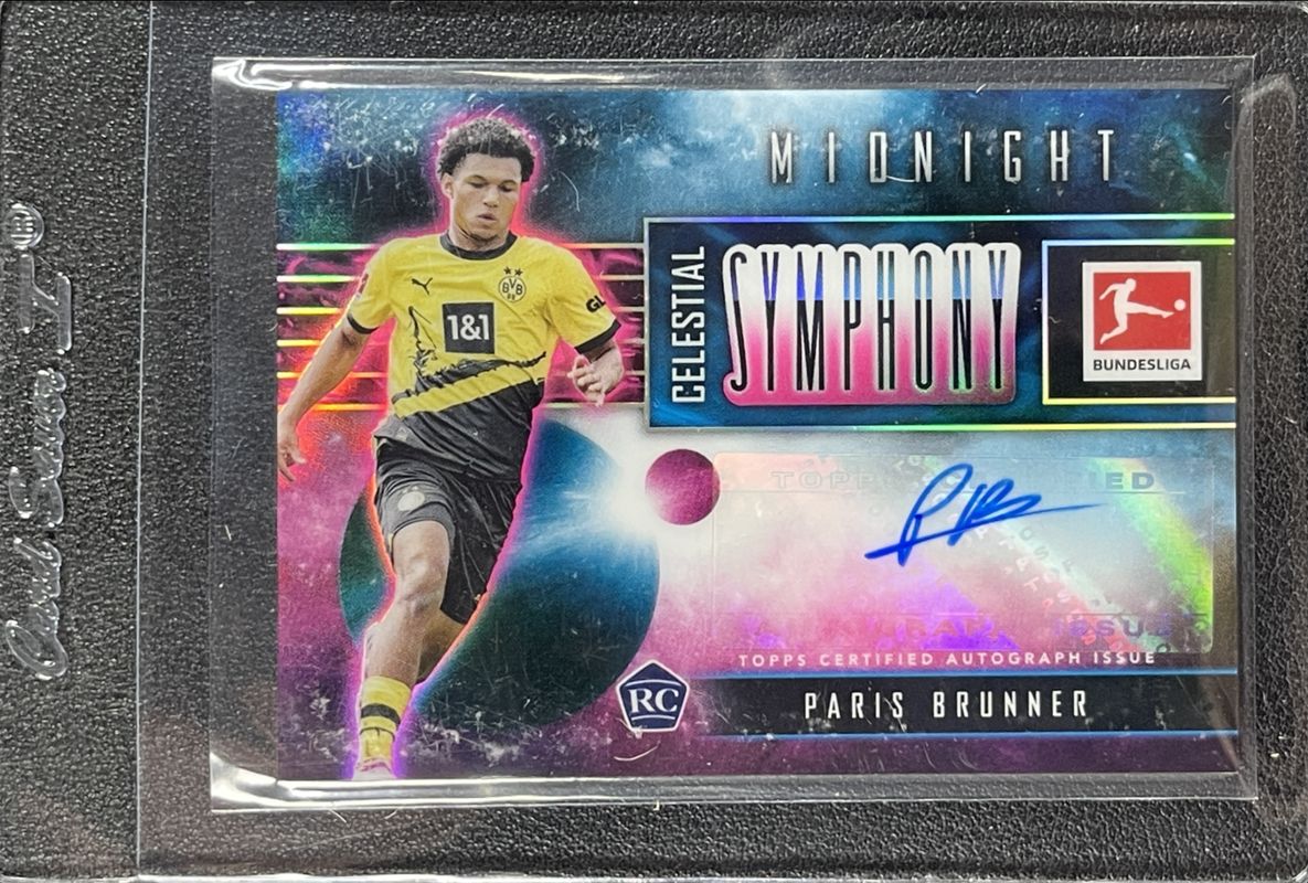 The Paris Brunner 2023 Topps Midnight Bundesliga #CS-PB Celestial Symphony Autographs - Moon Beam Rookie card is 1 of 25 Paris Brunner's card variations in the 2023 Topps Midnight Bundesliga set being tracked by Sports Card Investor, including Base, Moon Beam, Moonrise /25, Midnight /12, and Daybreak /5.