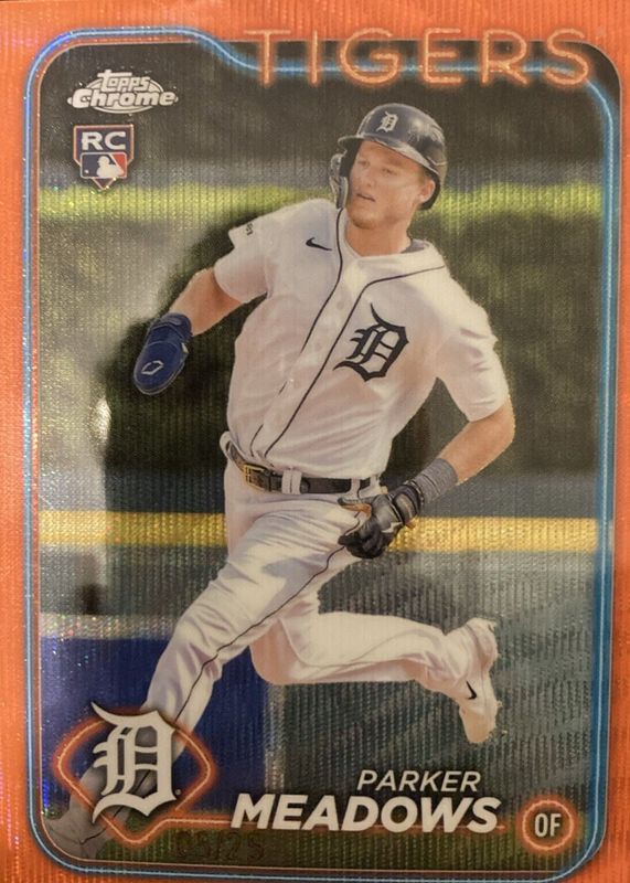 The Parker Meadows 2024 Topps Chrome #271 Orange Wave Refractor /25 Rookie card in Raw condition has not changed in price in the last 30 days and was last sold for $75.00 .