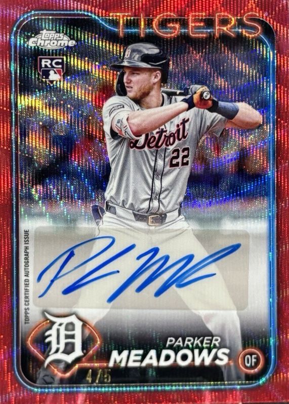 Auctions Ending Soon for Parker Meadows 2024 Topps Chrome Update #AC-PM Autographs - Red Wave Refractor /5 Rookie RAW