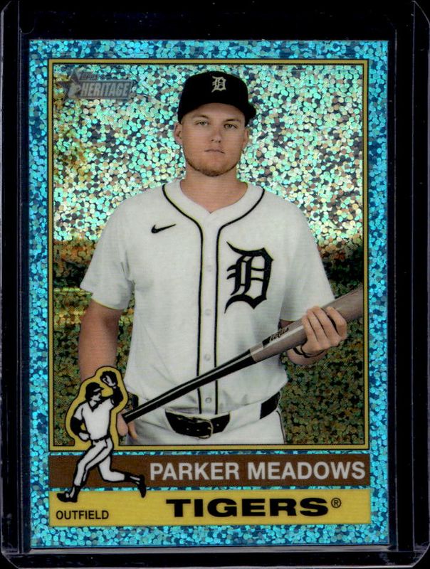 Parker Meadows 2025 Topps Heritage #483 Chrome - Light Blue Sparkle Refractor RAW