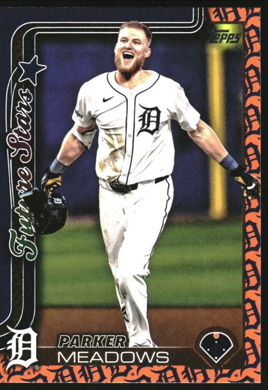 The Parker Meadows 2025 Topps #576 Team Color card is 1 of 66 Parker Meadows' card variations in the 2025 Topps set being tracked by Sports Card Investor, including Base, Aqua Holo Foil, Diamante Foil, Holo Foil, and Pink Diamante Foil.