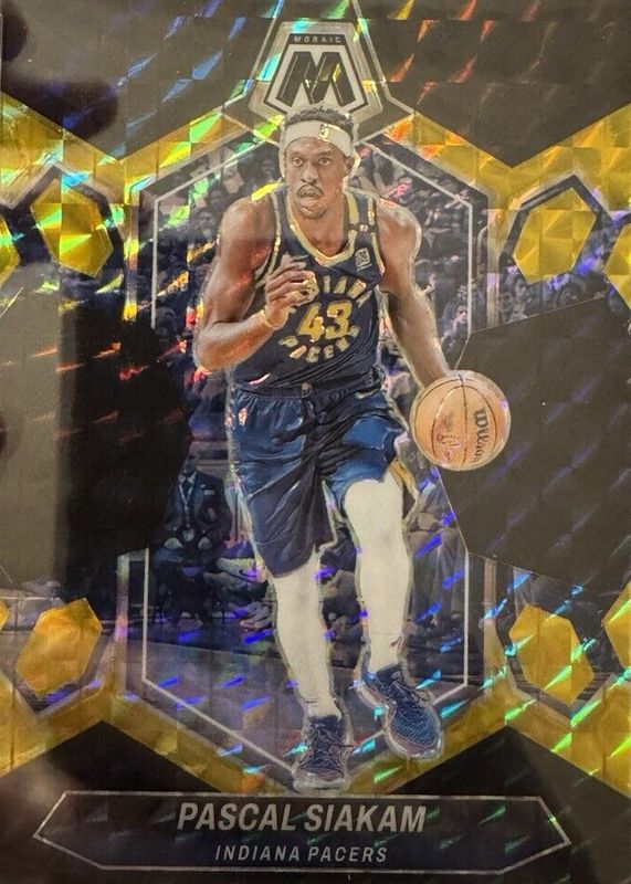 This card is 1 of 16 Pascal Siakam's card variations in the 2023 Mosaic set being tracked by Sports Card Investor, including Choice Peacock /(SSP), Genesis /(SSP), Glitter /(SSP), White Sparkle /(SSP), and Fast Break Gold /10.
