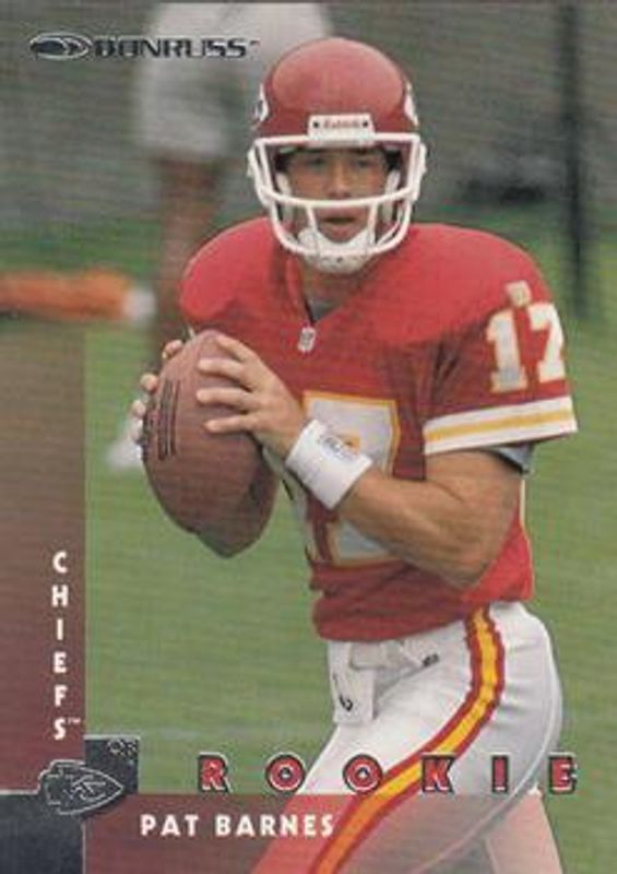 The Pat Barnes 1997 Donruss #213 Base Rookie card is 1 of 3 Pat Barnes' card variations in the 1997 Donruss set being tracked by Sports Card Investor, including Press Proof Gold Die-Cut, and Press Proof Silver.