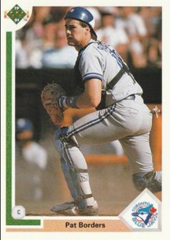 The Pat Borders 1991 Upper Deck #147 Base card is 1 of 2 Pat Borders' card variations in the 1991 Upper Deck set being tracked by Sports Card Investor, including Base.