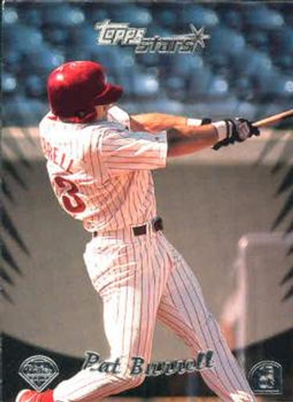 The Pat Burrell 2000 Topps Stars #122 Base card is 1 of 5 Pat Burrell's card variations in the 2000 Topps Stars set being tracked by Sports Card Investor, including #185 Base, #PP4 Pre Production Samples, #122 Metallic Blue /299, and #185 Metallic Blue /299.