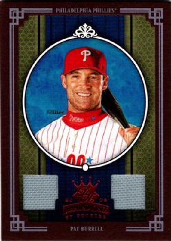 The Pat Burrell 2005 Diamond Kings #383 Materials - Framed Red /200 card is 1 of 37 Pat Burrell's card variations in the 2005 Diamond Kings set being tracked by Sports Card Investor, including Base, Framed Red, Non Canvas, Framed Blue /100, and Bronze /50.