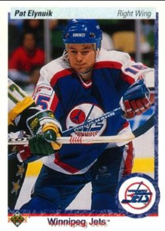 The Pat Elynuik 1990 Upper Deck #74a Base card is 1 of 5 Pat Elynuik's card variations in the 1990 Upper Deck set being tracked by Sports Card Investor, including #74 Base, #74b Base, #74c Base, and #74d Base.