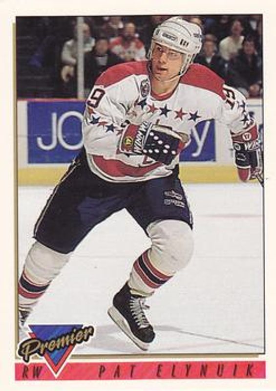 The Pat Elynuik 1993 Topps Premier #51 Base card is 1 of 2 Pat Elynuik's card variations in the 1993 Topps Premier set being tracked by Sports Card Investor, including Gold.