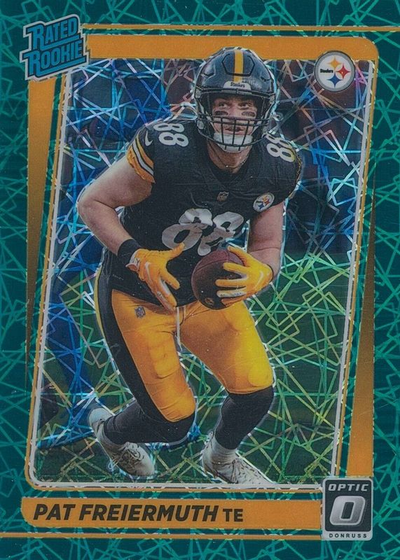 The Pat Freiermuth 2021 Optic #232 Green Velocity Rookie card in Raw condition has not changed in price in the last 30 days and was last sold for $2.99 .