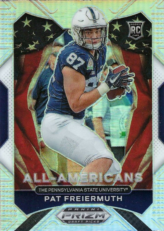 The Pat Freiermuth 2021 Prizm Draft Picks #184 All-Americans - Silver Rookie card in Raw condition has not changed in price in the last 30 days and was last sold for $1.99 .