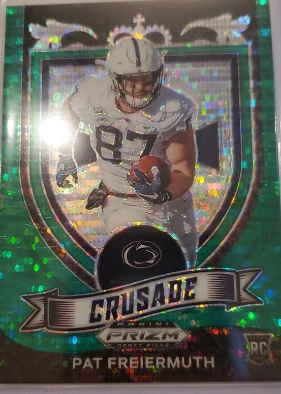 The Pat Freiermuth 2021 Prizm Draft Picks #173 Crusade Green Pulsar /25 Rookie card in Raw condition has not changed in price in the last 30 days and was last sold for $13.00 .