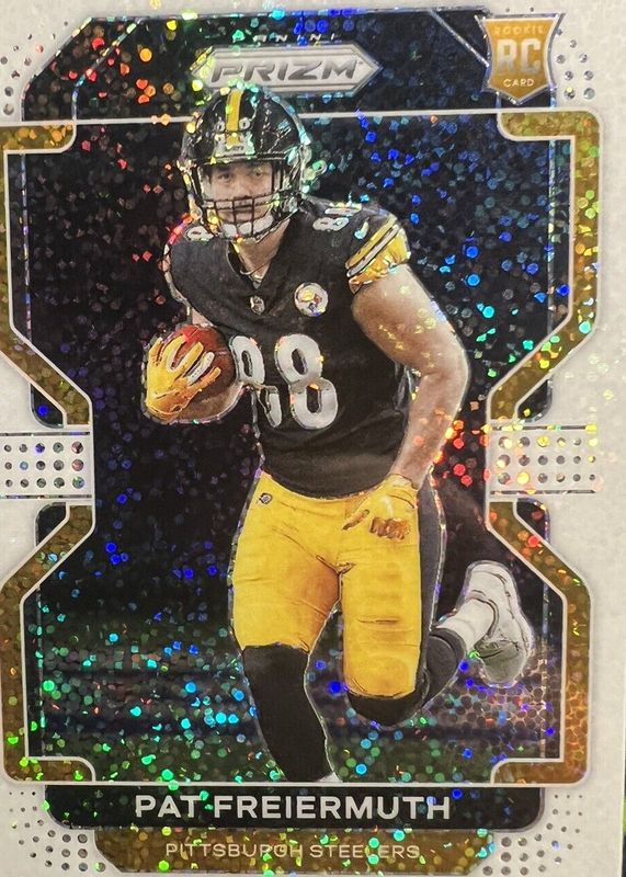 This card is 1 of 61 Pat Freiermuth's card variations in the 2021 Prizm set being tracked by Sports Card Investor, including Base, Disco, Green, Green Ice, and Lazer.