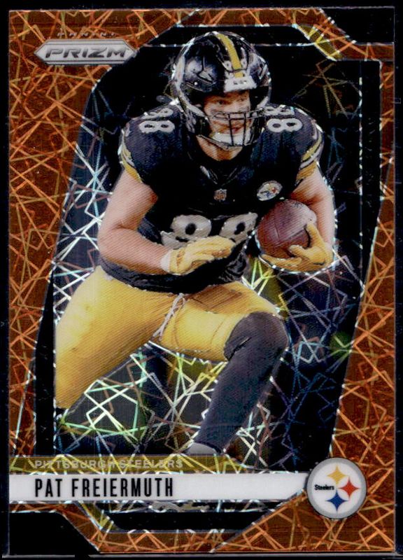 The Pat Freiermuth 2024 Prizm #244 Lazer card is 1 of 83 Pat Freiermuth's card variations in the 2024 Prizm set being tracked by Sports Card Investor, including Base, Choice Blue Yellow Green, Choice Silver, Disco, and Green.