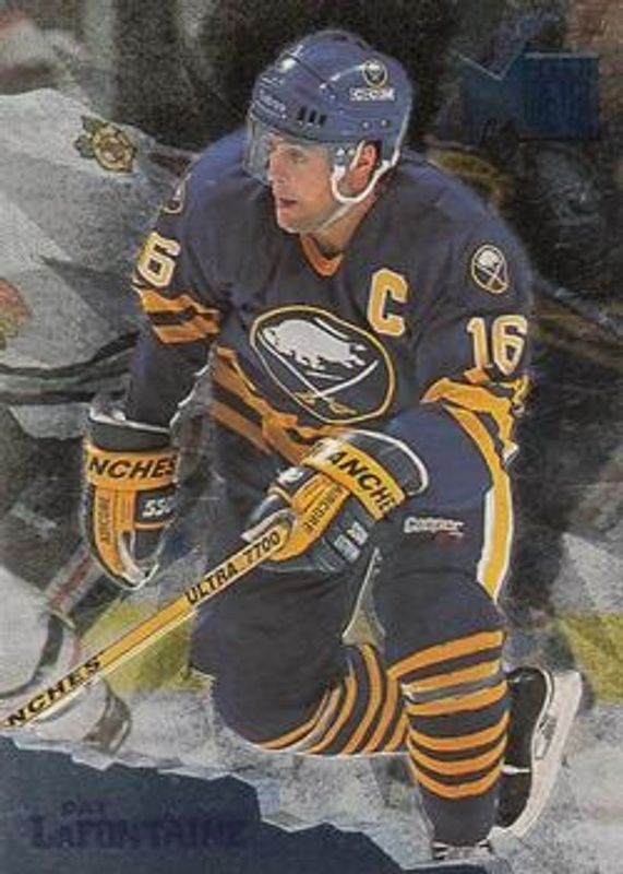The Pat LaFontaine 1995 Fleer Metal #16 Base card is 1 of 2 Pat LaFontaine's card variations in the 1995 Fleer Metal set being tracked by Sports Card Investor, including International Steel.