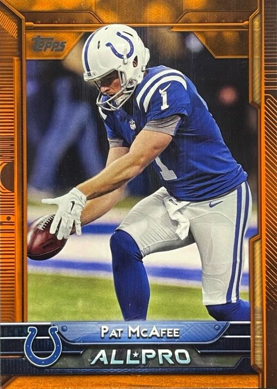 This card is 1 of 8 Pat McAfee's card variations in the 2015 Topps set being tracked by Sports Card Investor, including Base, Purple, Gold /2015, Pink /499, and Camo /399.
