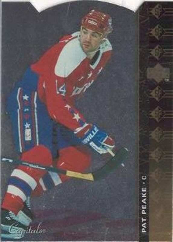 The Pat Peake 1994 Upper Deck #SP-176 SP die-cut card is 1 of 4 Pat Peake's card variations in the 1994 Upper Deck set being tracked by Sports Card Investor, including Base, Electric Ice, and SP.