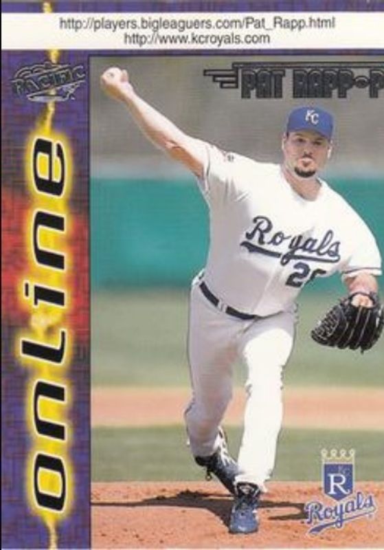 The Pat Rapp 1998 Pacific Online #351 Base card is 1 of 4 Pat Rapp's card variations in the 1998 Pacific Online set being tracked by Sports Card Investor, including Base Winners, Red, and Web Cards.