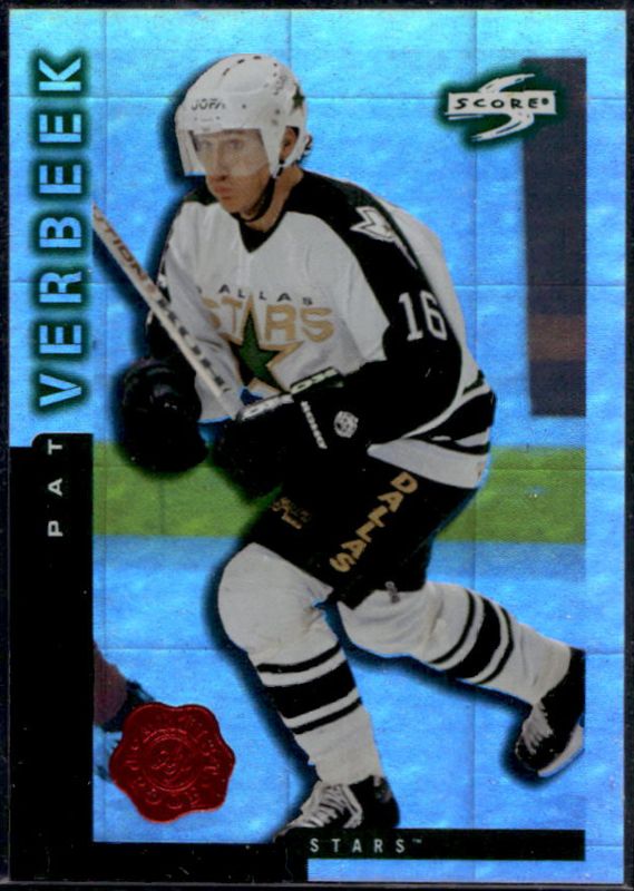 The Pat Verbeek 1997 Score #124 Artist's Proofs card is 1 of 5 Pat Verbeek's card variations in the 1997 Score set being tracked by Sports Card Investor, including Base, Dallas Stars Score Sheet, Golden Blades, and Check It.