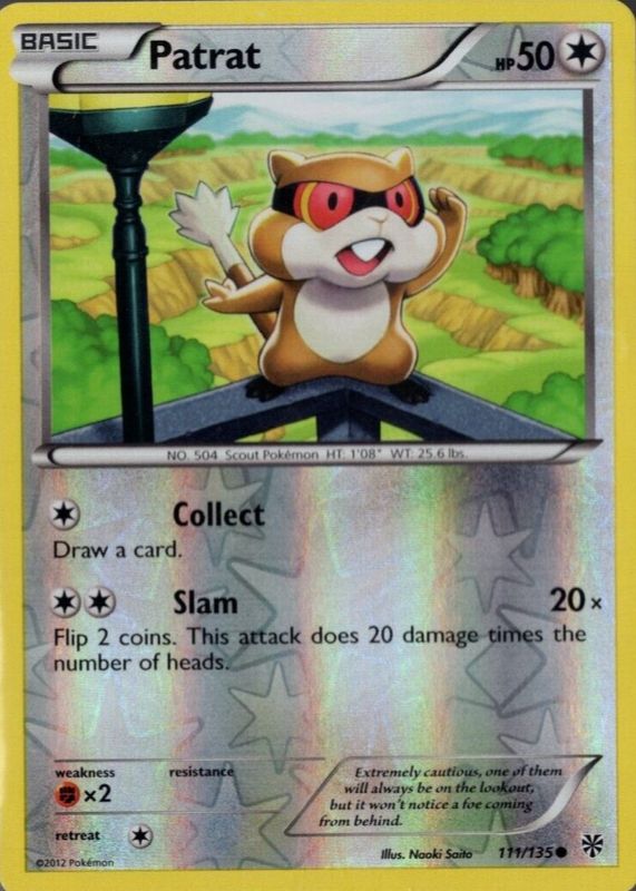 Patrat 2013 Black & White: Plasma Storm #111/135 Reverse Holo RAW TCG (NEAR MINT) Price Guide
