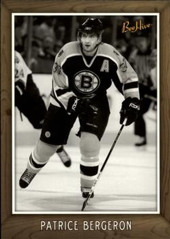 The Patrice Bergeron 2006 Upper Deck Beehive #91 5x7 Variation card is 1 of 11 Patrice Bergeron's card variations in the 2006 Upper Deck Beehive set being tracked by Sports Card Investor, including Base, 5x7 Photo Cards, Blue, Gold, and Red Facsimile Signatures.