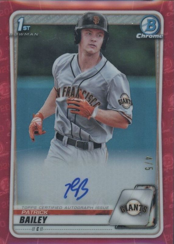 Patrick Bailey 2020 Bowman Draft #CDA-PB Chrome DP Auto - Red Refractor /5 (1st) RAW Price Guide