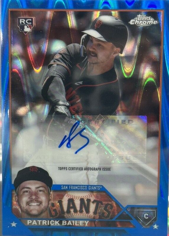 Auctions Ending Soon for Patrick Bailey 2023 Topps Chrome Update #AC-PB Autographs - Blue RayWave Refractor /150 Rookie RAW