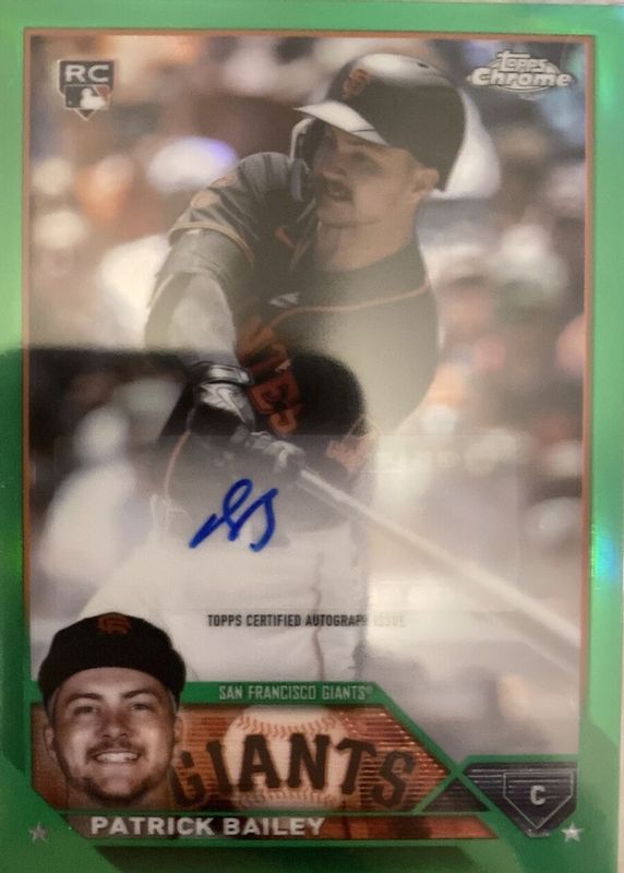 Auctions Ending Soon for Patrick Bailey 2023 Topps Chrome Update #AC-PB Autographs - Green Refractor /99 Rookie RAW