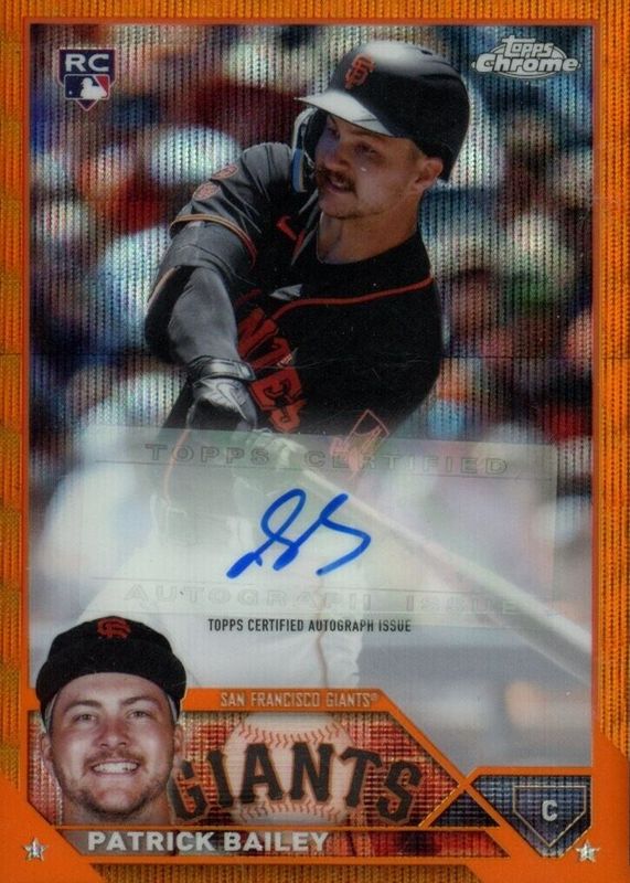 Auctions Ending Soon for Patrick Bailey 2023 Topps Chrome Update #AC-PB Autographs - Orange Wave Refractor /25 Rookie RAW