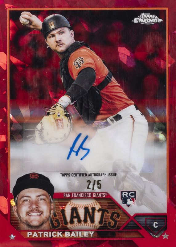 Auctions Ending Soon for Patrick Bailey 2023 Topps Chrome Update Sapphire Edition #USA-PB Autographs - Red /5 Rookie RAW