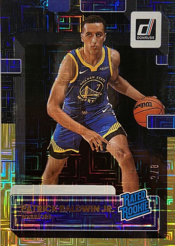 The Patrick Baldwin Jr. 2022 Donruss #228 Choice Black Gold /8 Rookie card in Raw condition has not changed in price in the last 30 days and was last sold for $11.02 .