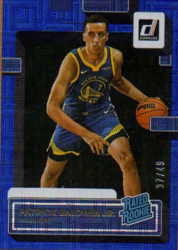 The Patrick Baldwin Jr. 2022 Donruss #228 Choice Blue /49 Rookie card in Raw condition has not changed in price in the last 30 days and was last sold for $4.99 .