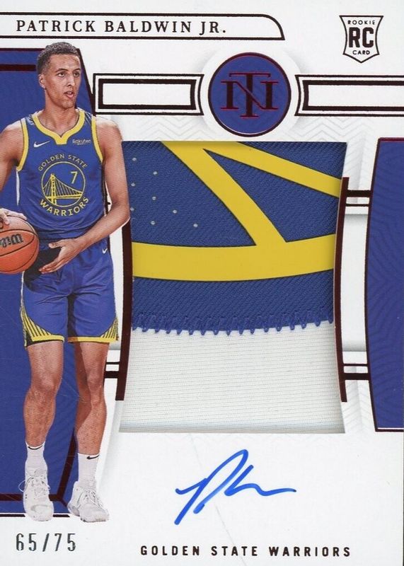 This card is 1 of 10 Patrick Baldwin Jr.'s card variations in the 2022 National Treasures set being tracked by Sports Card Investor, including Rookie Patch Auto /99, Rookie Patch Auto - Bronze /49, Rookie Patch Auto - Pink /25, Rookie Patch Auto - Gold FOTL /24, and Rookie Patch Auto - Gold /10.