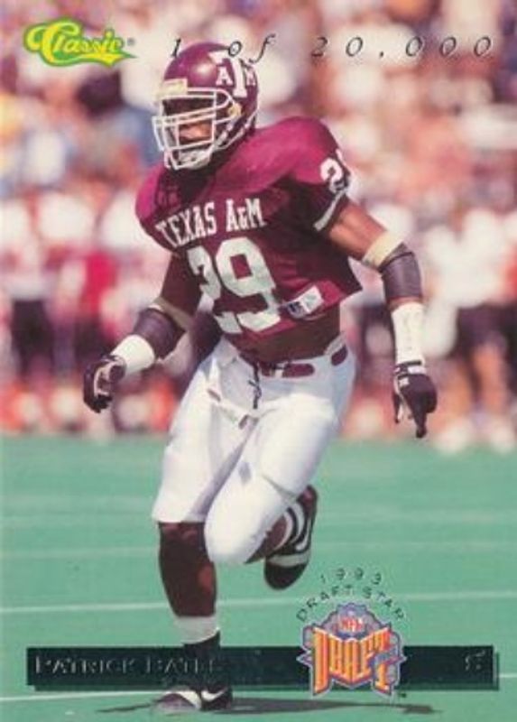 The Patrick Bates 1993 Classic #DS9 Draft Stars Rookie card is 1 of 3 Patrick Bates' card variations in the 1993 Classic set being tracked by Sports Card Investor, including Base, and Gold.