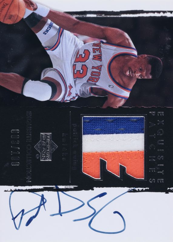 The Patrick Ewing 2003 Upper Deck Exquisite Collection #AP-PE Patches Autographs /100 card in Raw condition has not changed in price in the last 30 days and was last sold for $960.00 .