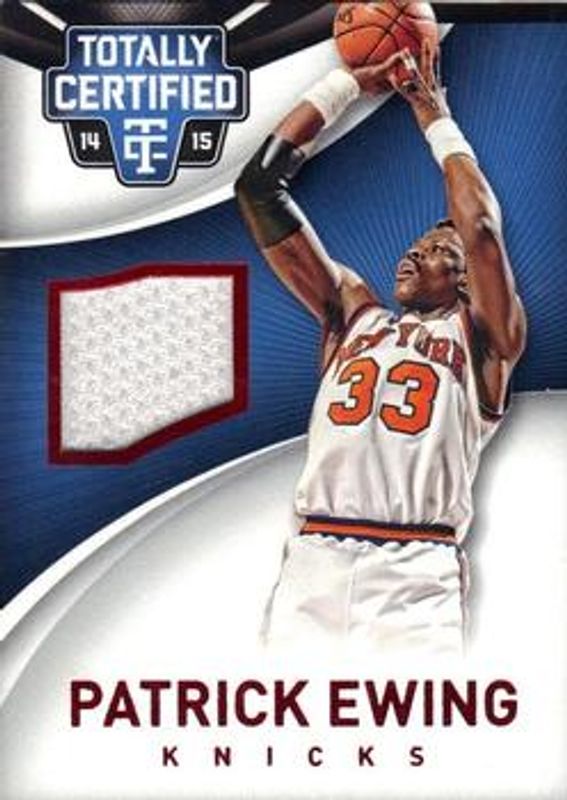 The Patrick Ewing 2014 Totally Certified #57 Jerseys - Red /249 card is 1 of 19 Patrick Ewing's card variations in the 2014 Totally Certified set being tracked by Sports Card Investor, including Base, Platinum Red /279, Platinum Blue /149, Mirror Platinum Red Die-Cut /135, and Mirror Platinum Blue Die-Cut /74.