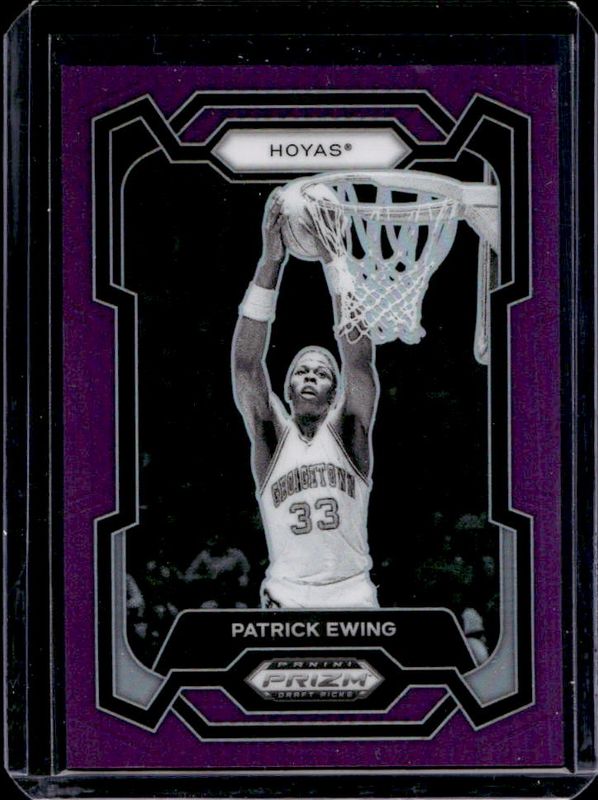 The Patrick Ewing 2024 Prizm Draft Picks #20 Purple /75 card is 1 of 40 Patrick Ewing's card variations in the 2024 Prizm Draft Picks set being tracked by Sports Card Investor, including Base, Green, Green Wave, Hyper, and Orange Ice.
