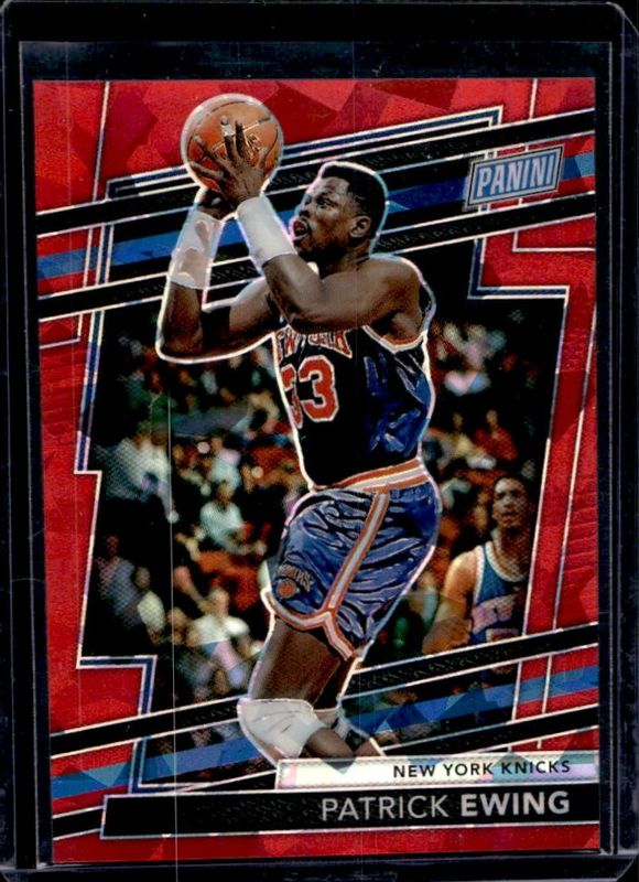 The Patrick Ewing 2024 Panini NSCC VIP Party #36 Red Sparkle /149 card is 1 of 25 Patrick Ewing's card variations in the 2024 Panini NSCC VIP Party set being tracked by Sports Card Investor, including Base, Autographs, Black Gold Autographs, Giraffe, and Gold Autographs.