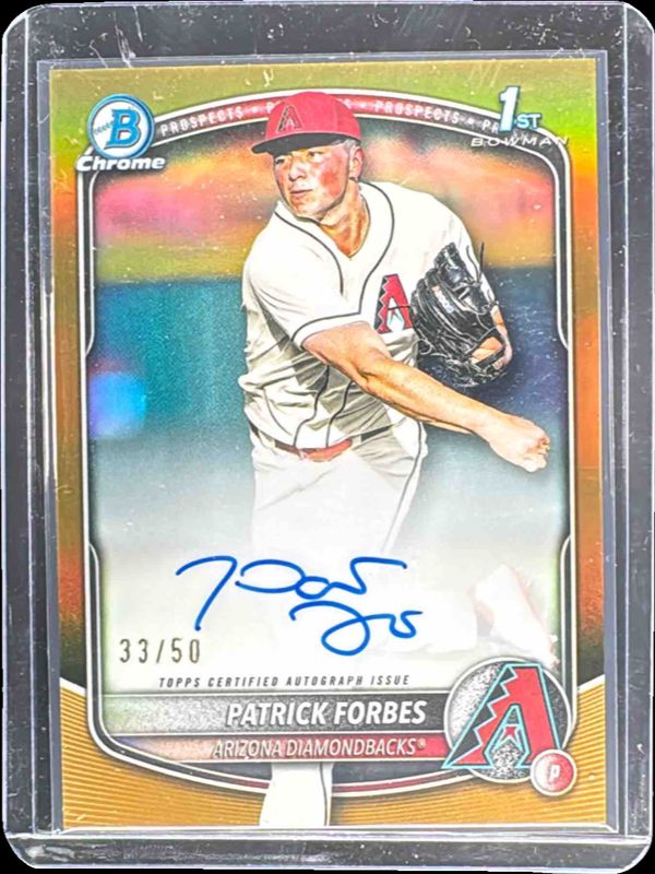 Best Prices Available For Sale of Patrick Forbes 2025 Bowman Draft #CPA-PF Chrome Prospect Auto - Gold Refractor /50 (1st)