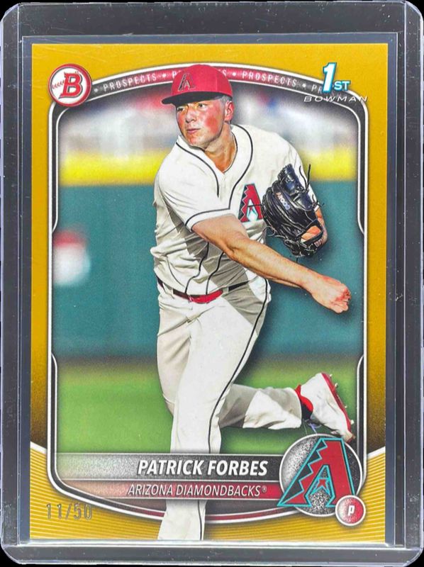 The Patrick Forbes 2025 Bowman Draft #BD-89 Gold Border /50 card is 1 of 86 Patrick Forbes' card variations in the 2025 Bowman Draft set being tracked by Sports Card Investor, including Base, Chrome (1st), Chrome - Lazer Refractor (1st), Chrome - Refractor (1st), and Chrome - Sky Blue Refractor (1st).