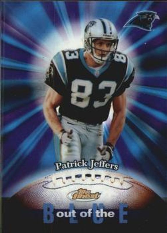 The Patrick Jeffers 2000 Topps Finest #B2 Out of the Blue card is 1 of 6 Patrick Jeffers' card variations in the 2000 Topps Finest set being tracked by Sports Card Investor, including Base /2400, Gold Refractor /50, Finest Moments, Finest Moments - Refractor, and Finest Moments - Refractor Autograph.