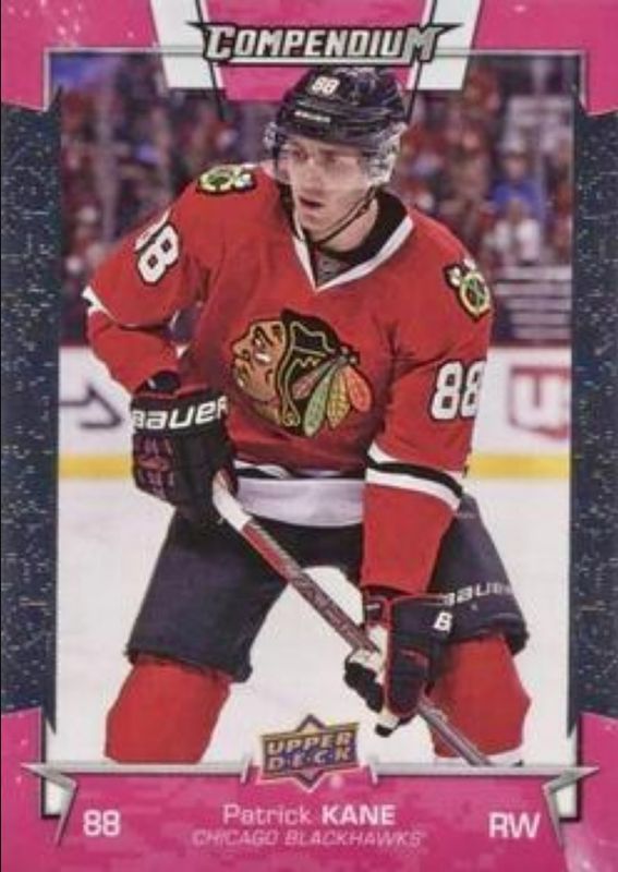 The Patrick Kane 2017 Upper Deck Compendium #SP4 SP Achievements - Magenta card is 1 of 10 Patrick Kane's card variations in the 2017 Upper Deck Compendium set being tracked by Sports Card Investor, including Blue, Gold, Printing Plates Black /1, Printing Plates Cyan /1, and Printing Plates Magenta /1.