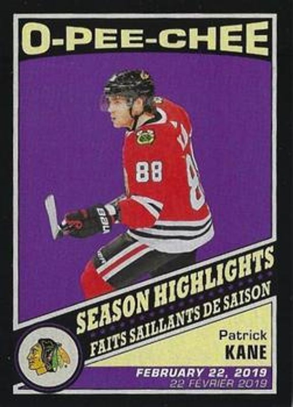 Patrick Kane 2019 O-Pee-Chee #597 Retro Black Border /100 RAW Price Guide