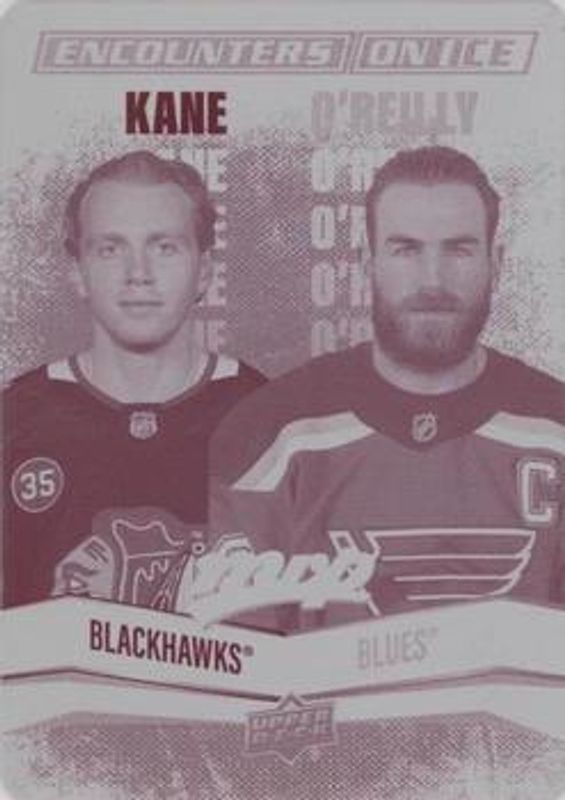 Patrick Kane / Ryan O'Reilly 2022 Upper Deck MVP #EI-2 Encounters on Ice - Printing Plates Magenta /1 RAW Price Guide